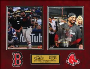 Original price was: $169.99.$149.99Current price is: $149.99.Steve Pearce and Mookie Betts Photo MVPs 2 way 20x16 with patches.This item is not framed unless you select the option for the cherry or black frame. Thank You -
