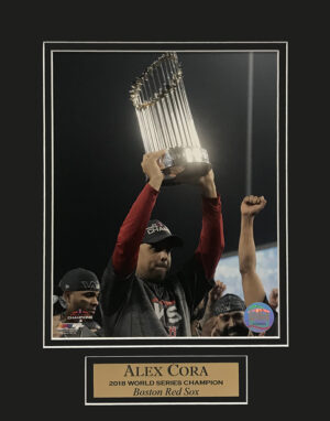 Original price was: $89.99.$79.99Current price is: $79.99.Alex Cora Photo World Series 2018 holding trophy, matted to 11x14. Boston Red Sox. This item is not framed unless you select the option for the cherry or black frame.