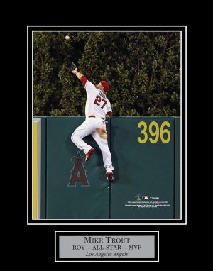 Original price was: $89.99.$79.99Current price is: $79.99.Mike Trout jump wall to catch matted to 11x14, Los Angeles Angels. This item is not framed unless you select the option for the cherry or black frame. -