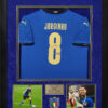 Jorginho autograph jersey Italy 2020-2021 matted and framed to 32x40, soccer.Frame dimensions are approximate.Frame dimensions are approximate.
