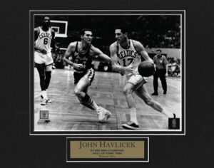 John Havlicek photo dribble matted to 11x14. This item is not framed unless you select the option for the cherry or the black frame.