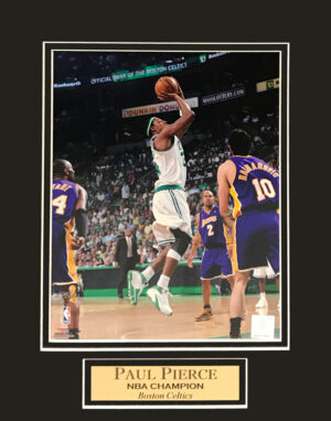 Paul Pierce photo arms up matted to 11x14. This item is not framed unless you select the option for the cherry or black frame.