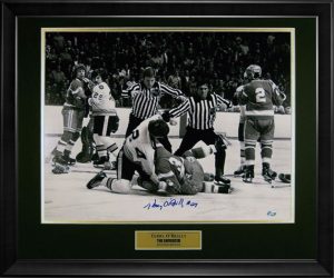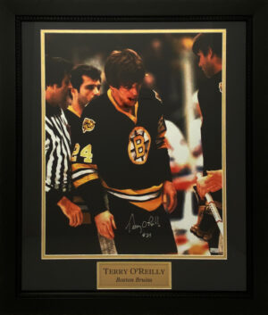 Original price was: $299.99.$199.99Current price is: $199.99.Terry O'Reilly Autograph Photo "The Enforcer" 23x27. Boston Bruins. Frame dimensions are approximately 23x27.
