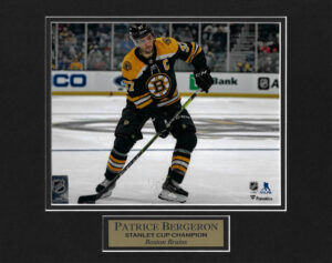 Patrice Bergeron photo Ready To Shoot, matted to 11x14. Boston Bruins. This item is not framed unless you select the option for the cherry or black frame.