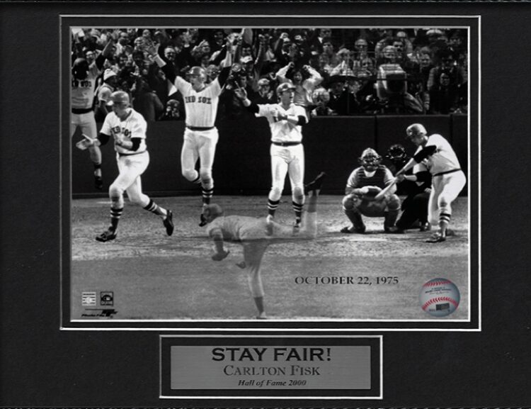 Carlton Fisk Photo World Series 1975 Game 6 Stay Fair, matted to 11×14. Boston Red Sox.