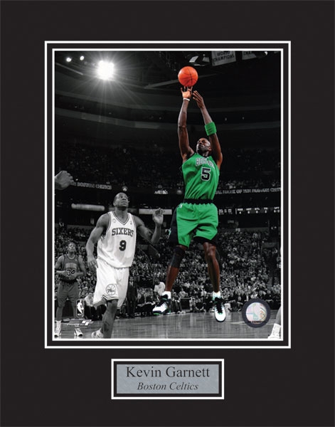 Kevin Garnett photo spotlight 11×14. This item is not framed unless you select the option for the cherry or black frame.