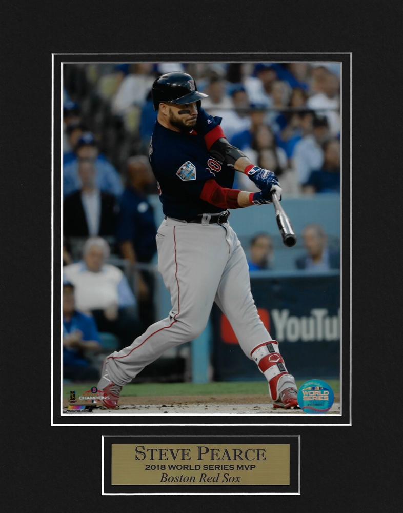 Steve Pearce photo World Series 2018 swing matted to 11×14, Boston Red Sox World Series Champion. This item is not framed unless you select the option for the cherry or black frame.