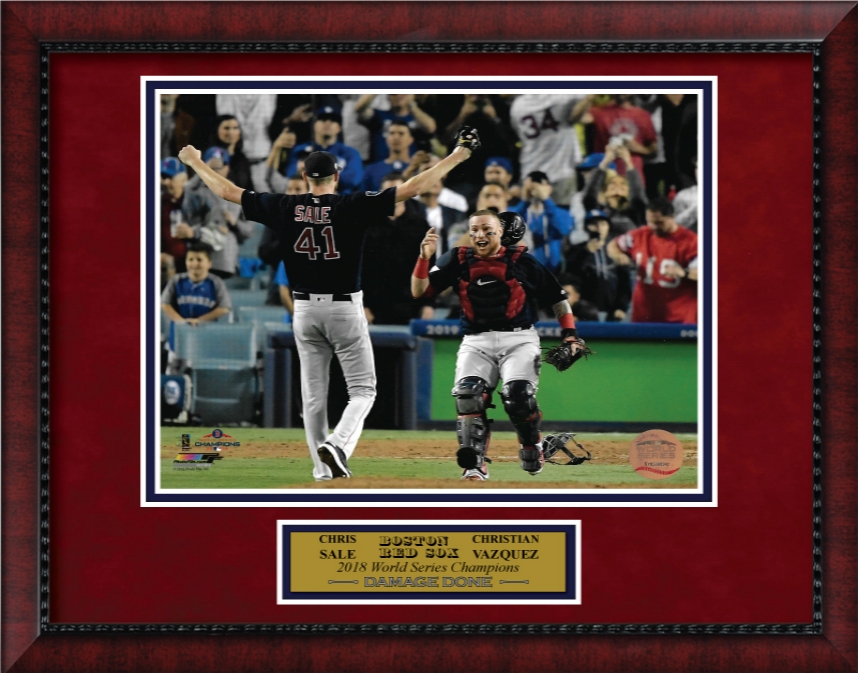 Chris Sale, Christian Vazquez photo World Series 2018, matted to 11×14. Boston Red Sox.