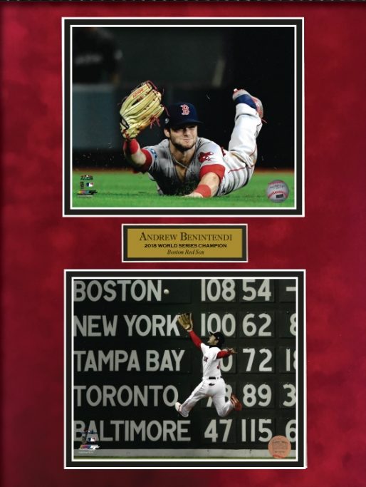 Andrew Benintendi Photo 2 way 2018 World Series Champion matted to 16×20.This item is not framed unless you select the option for the cherry or black frame. Thank You