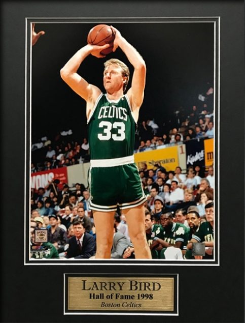 Larry Bird photo matted to 16×20 jump shot.
