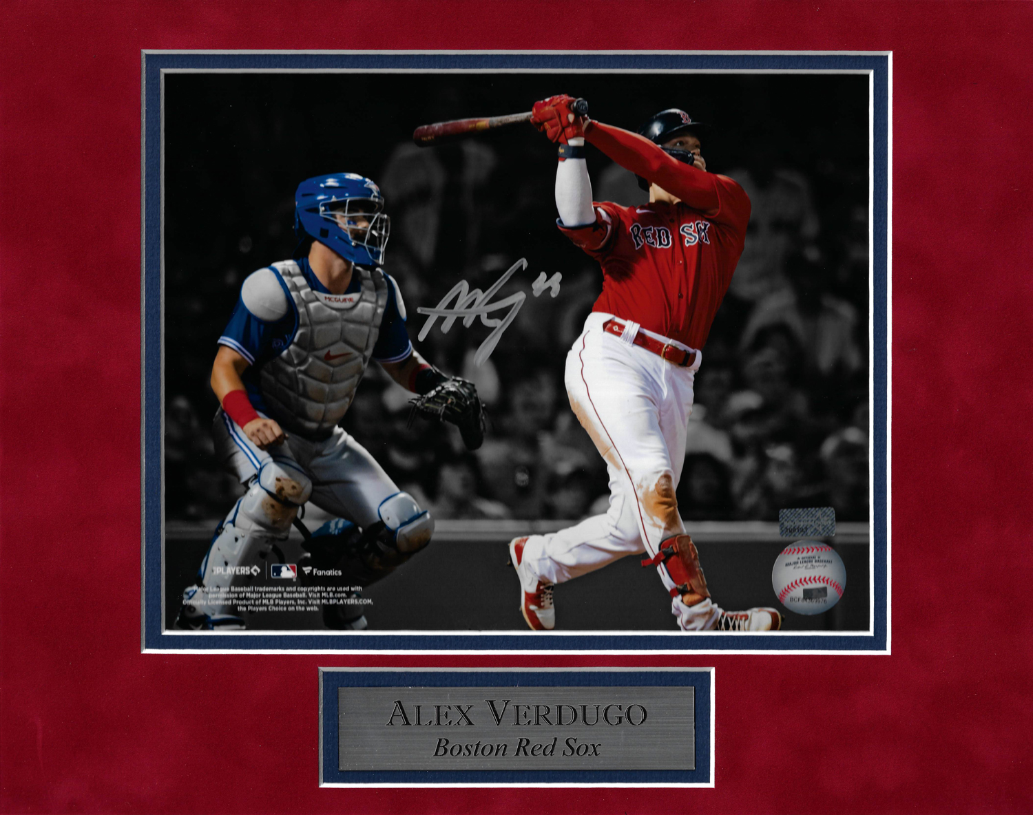 Alex Verdugo autograph photo spotlight at bat swing matted to 11×14, Boston Red Sox.