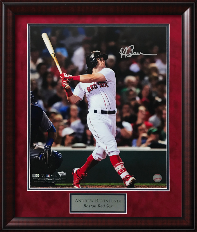 Andrew Benintendi Autograph Photo Swing 23×27. Boston Red Sox.