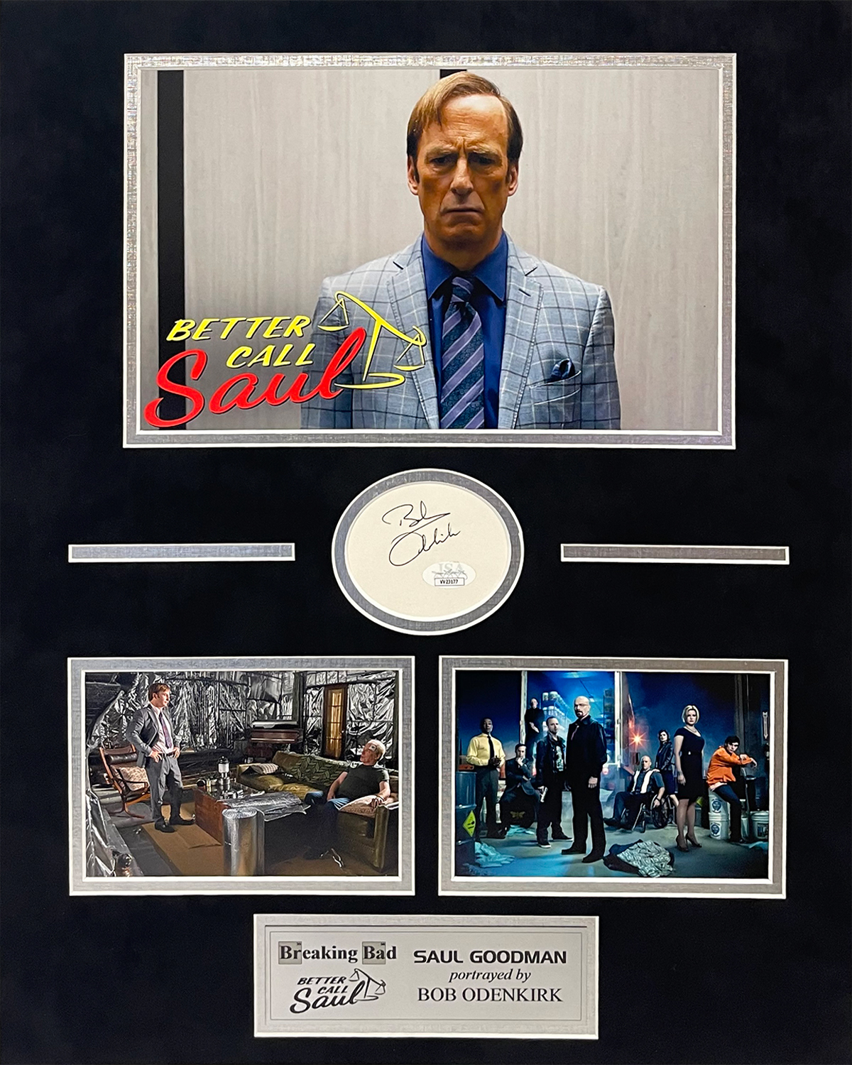 Bob Odenkirk autograph cut signature collage matted to 16×20. Odenkirk plays Saul Goodman in the shows Better Call Saul and Breaking Bad.