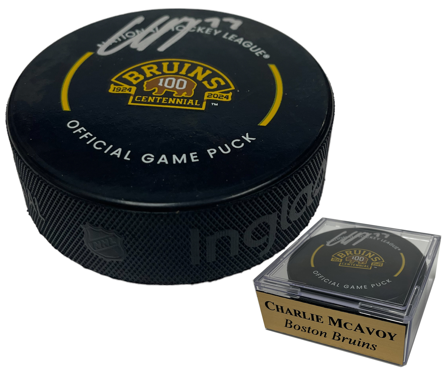 Charlie McAvoy Autograph Bruins Centennial Season Official Game Puck