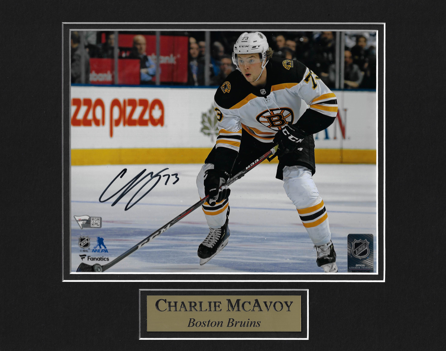 Charlie McAvoy Autograph Photo White Uniform Skate Close Up 11×14