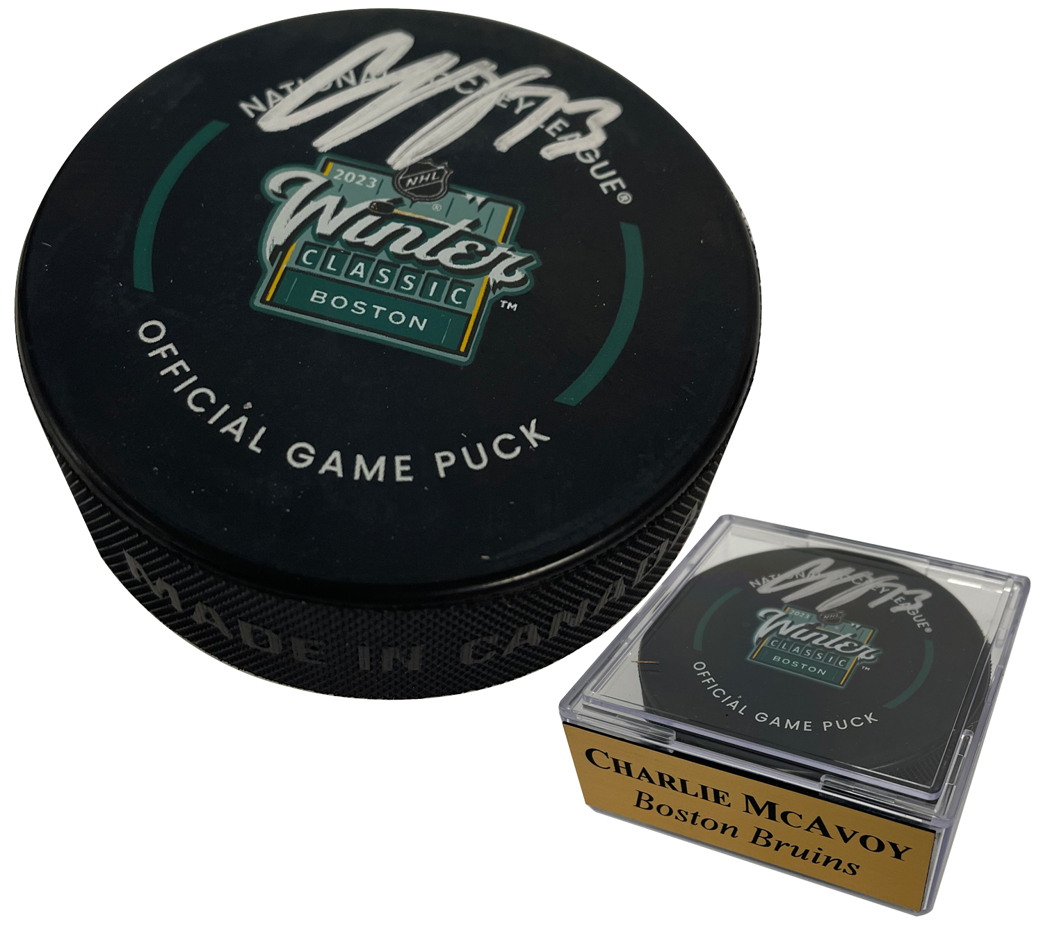 Charlie McAvoy autograph puck Winter Classic 2023, Boston Bruins.