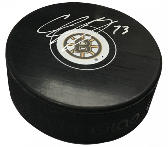 Boston Bruins spoke B puck autographed by Charlie McAvoy.