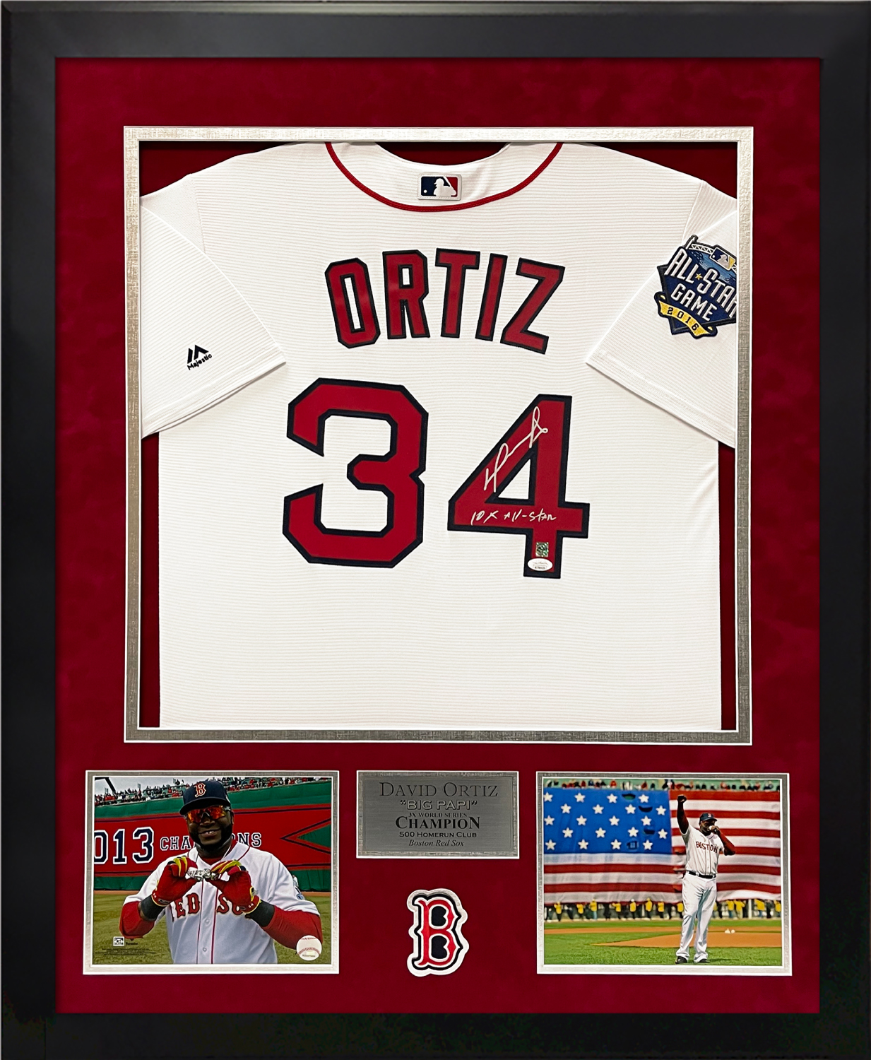 David Ortiz autograph jersey white All Star game 2016 with inscription “10x All Star”, matted and framed to 32×40, Boston Red Sox.