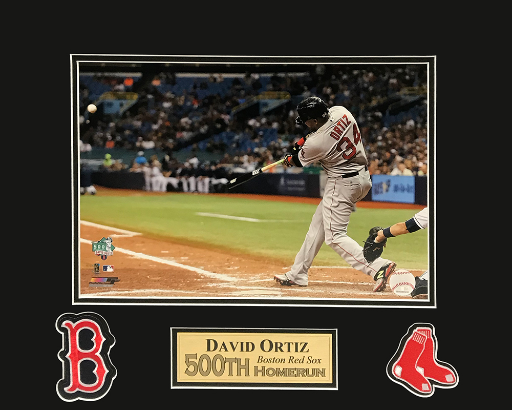David Ortiz photo swing 500th home run matted to 16×20, Boston Red Sox. This item is not framed unless you select the option for the cherry or black frame.