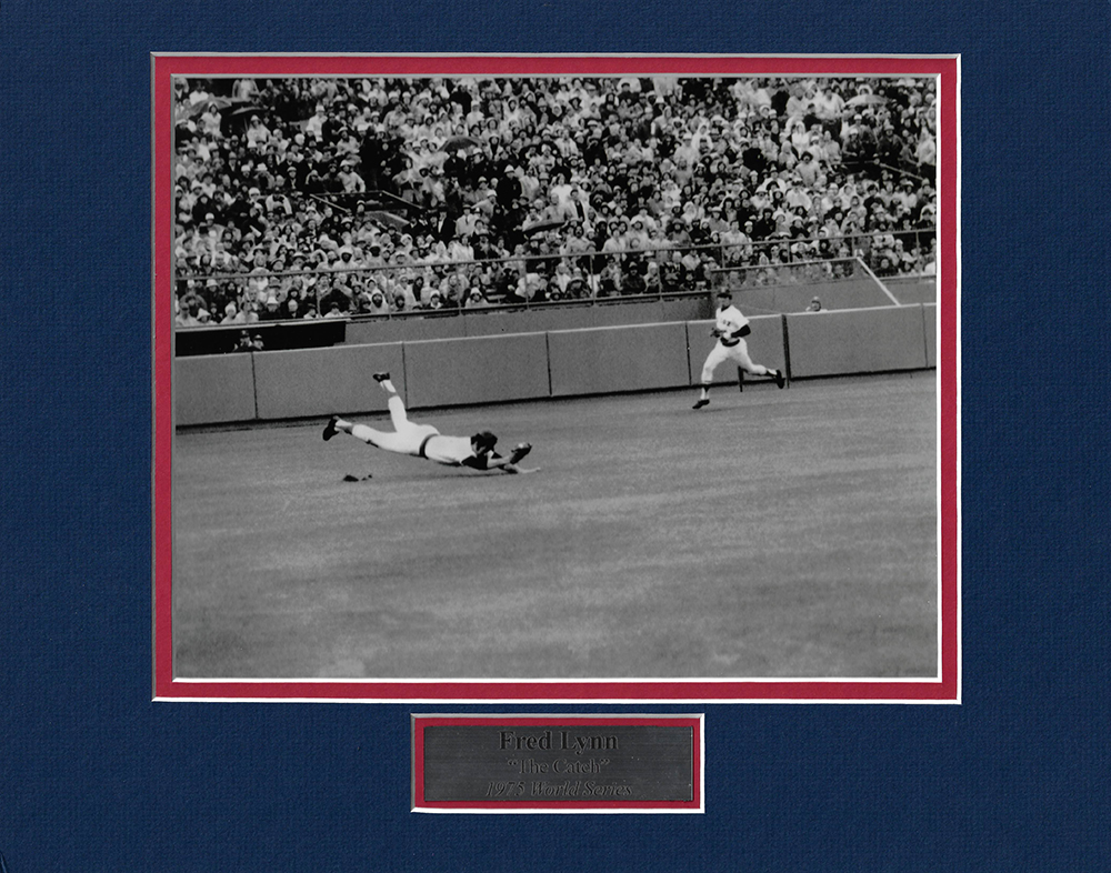Fred Lynn photo diving catch 1975 World Series matted to 11×14, Boston Red Sox.