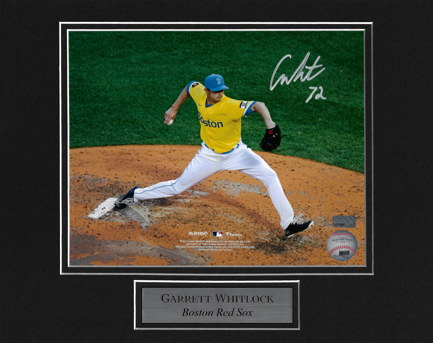 Garrett Whitlock autograph photo City Connect uniform, matted to 11×14. Boston Red Sox.