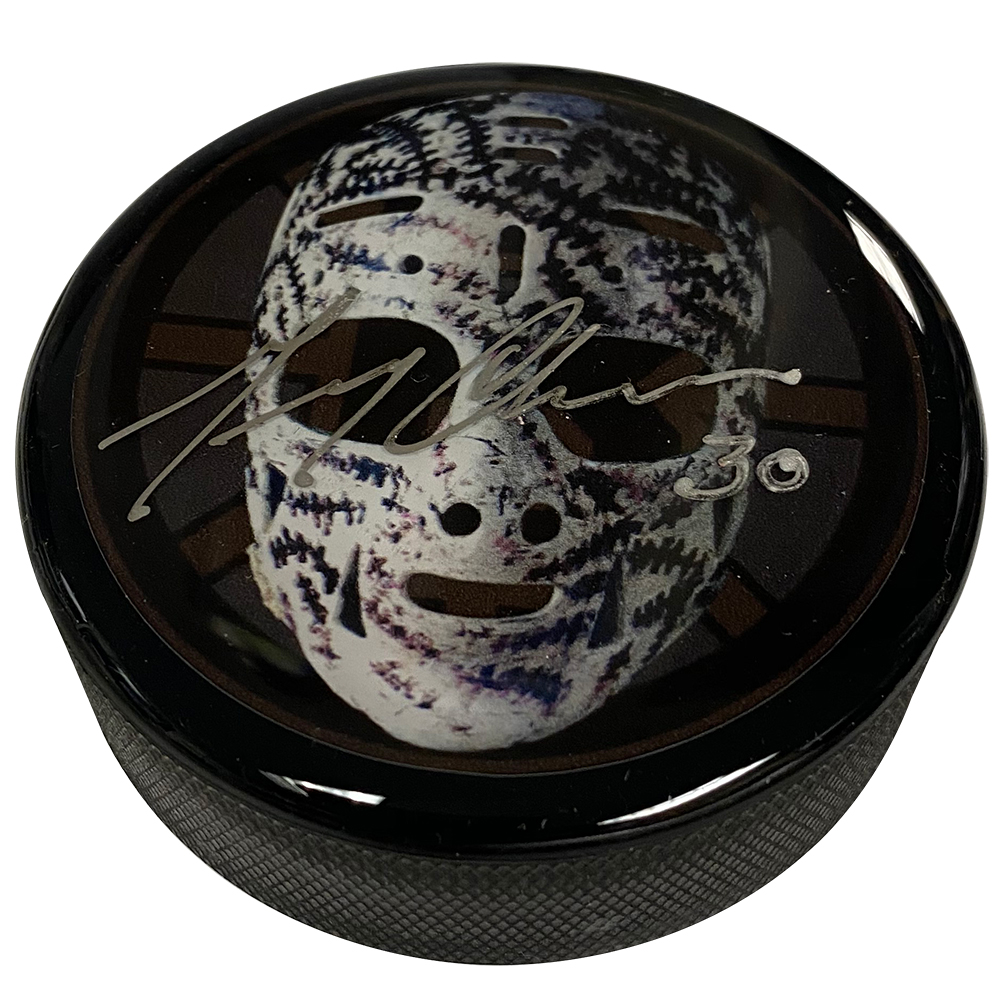 Gerry Cheevers autograph puck The Mask, Boston Bruins.
