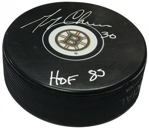 Gerry Cheevers autograph puck Bruins B.