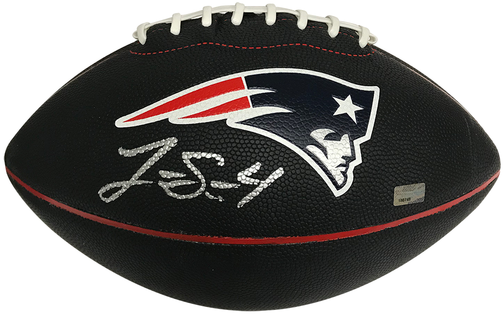 Jarrett Stidham autograph football novelty black Patriots logo, New England Patriots.