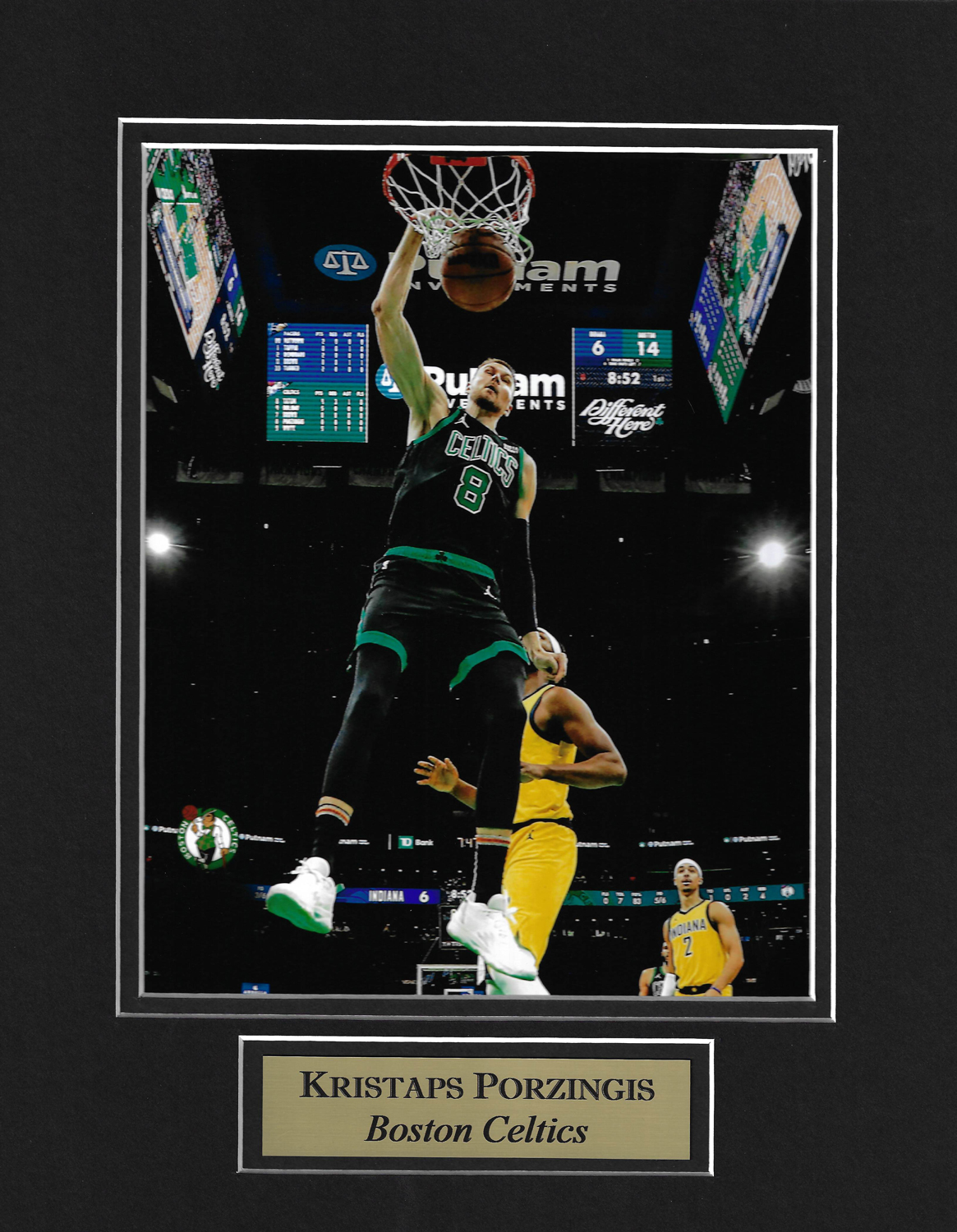 Kristaps Porzingis Photo Dunk, matted to 11×14. Boston Celtics.