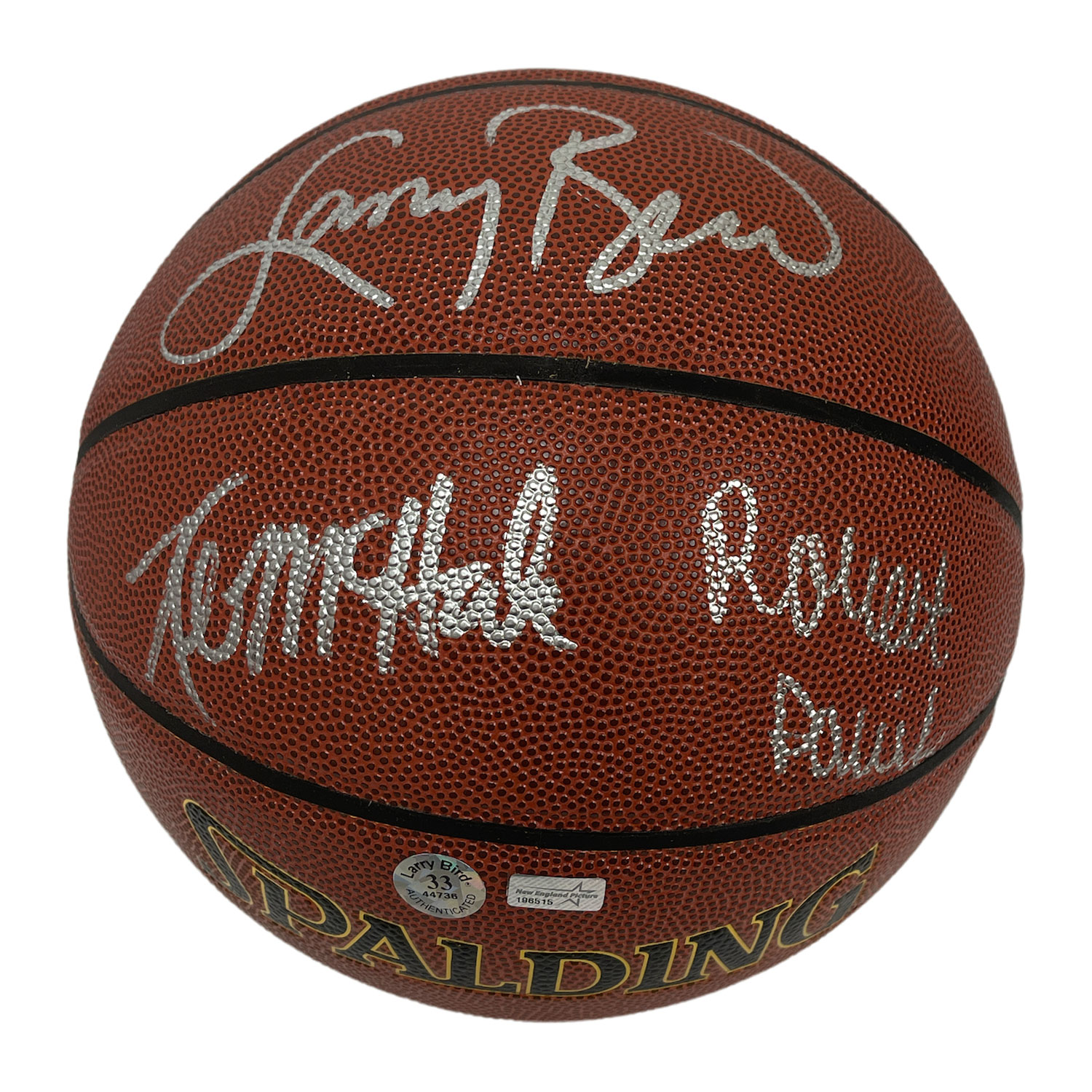 Larry Bird Kevin McHale Robert Parish triple autograph basketball, Boston Celtics.