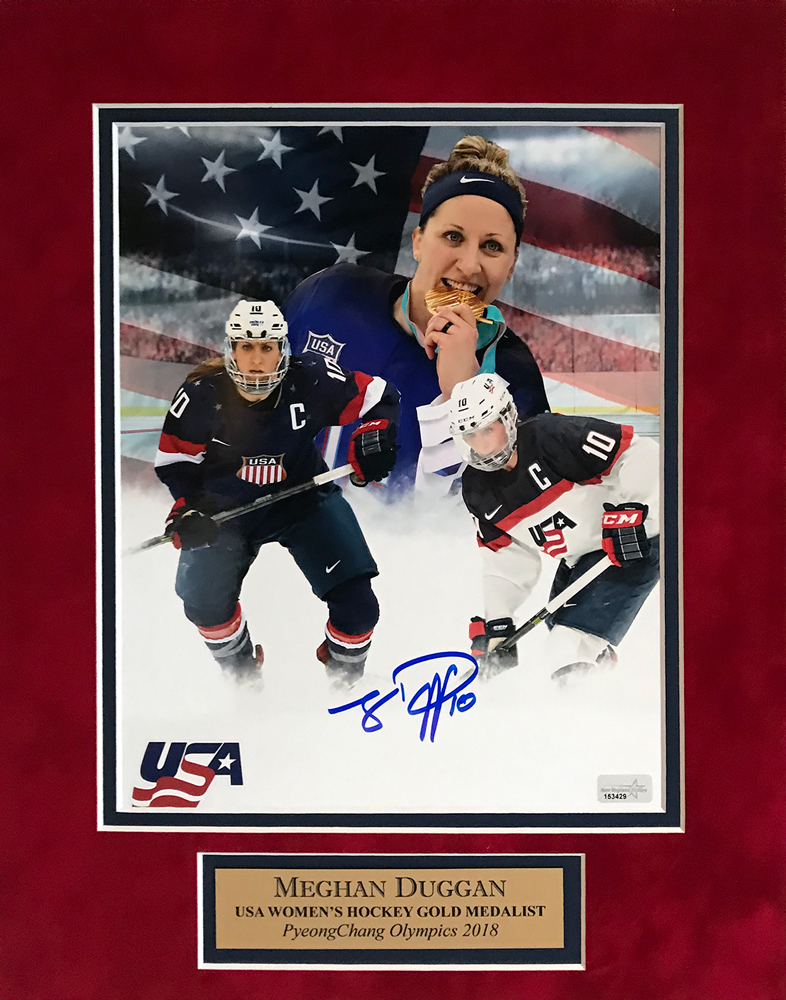 Meghan Duggan Autograph Photo USA Olympic Hockey Collage 11×14. 2018 Olympic Champion, PyeongChang. This item is not framed unless you select the option for the cherry or black frame.