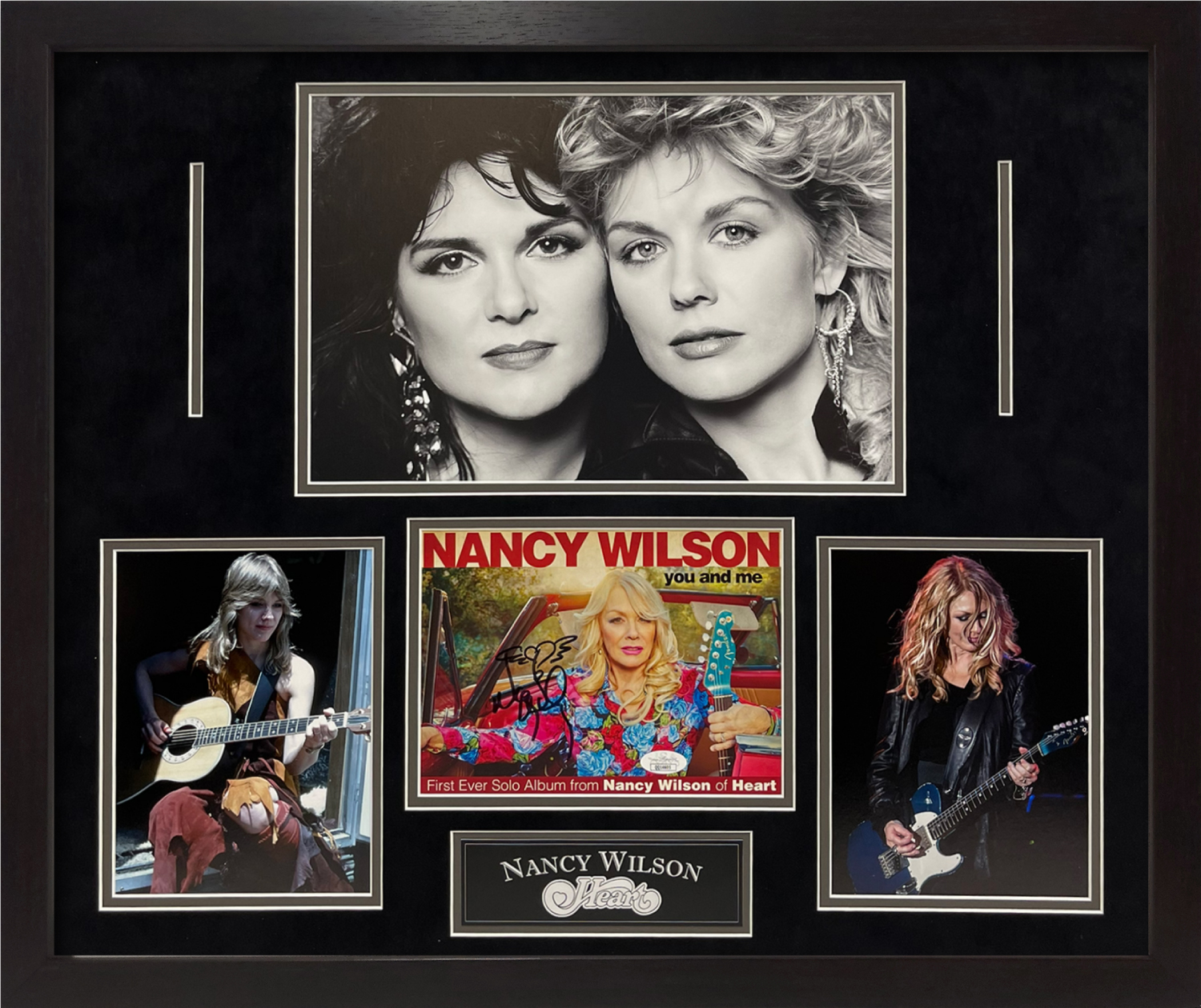 Nancy Wilson Autograph Heart Collage includes an autographed CD cover and 3 photos, framed to 20×24. The Nancy Wilson autograph CD cover is JSA authenticated.