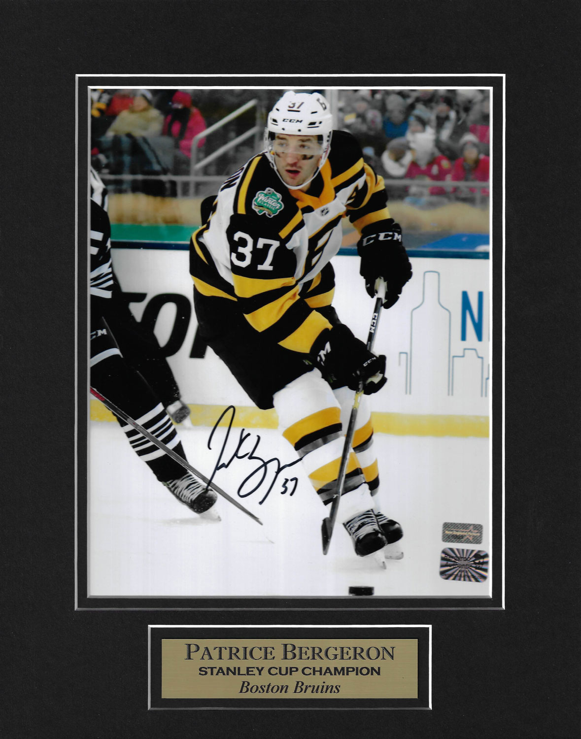 Patrice Bergeron Autograph Photo Skate 2019 Winter Classic 11×14