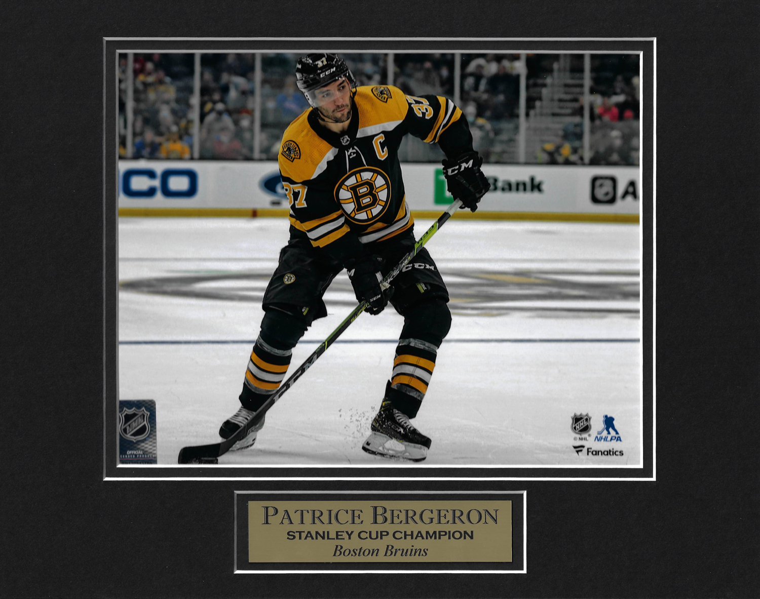 Patrice Bergeron photo Ready To Shoot, matted to 11×14. Boston Bruins.