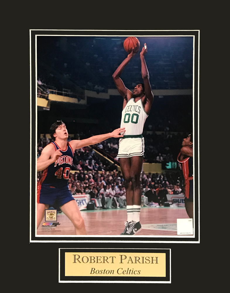 Robert Parish photo shoot matted to 11×14. This item is not framed unless you select the option for the cherry or black frame.