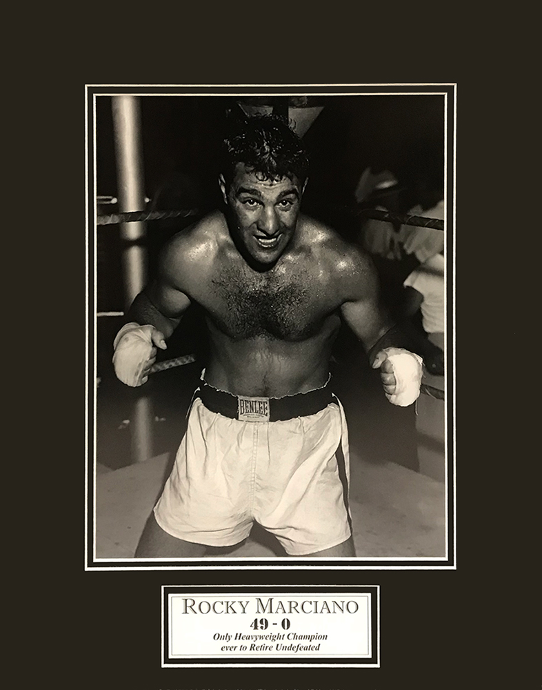 Rocky Marciano photo matted to 16×20. This item is not framed unless you select the option for the cherry or black frame.