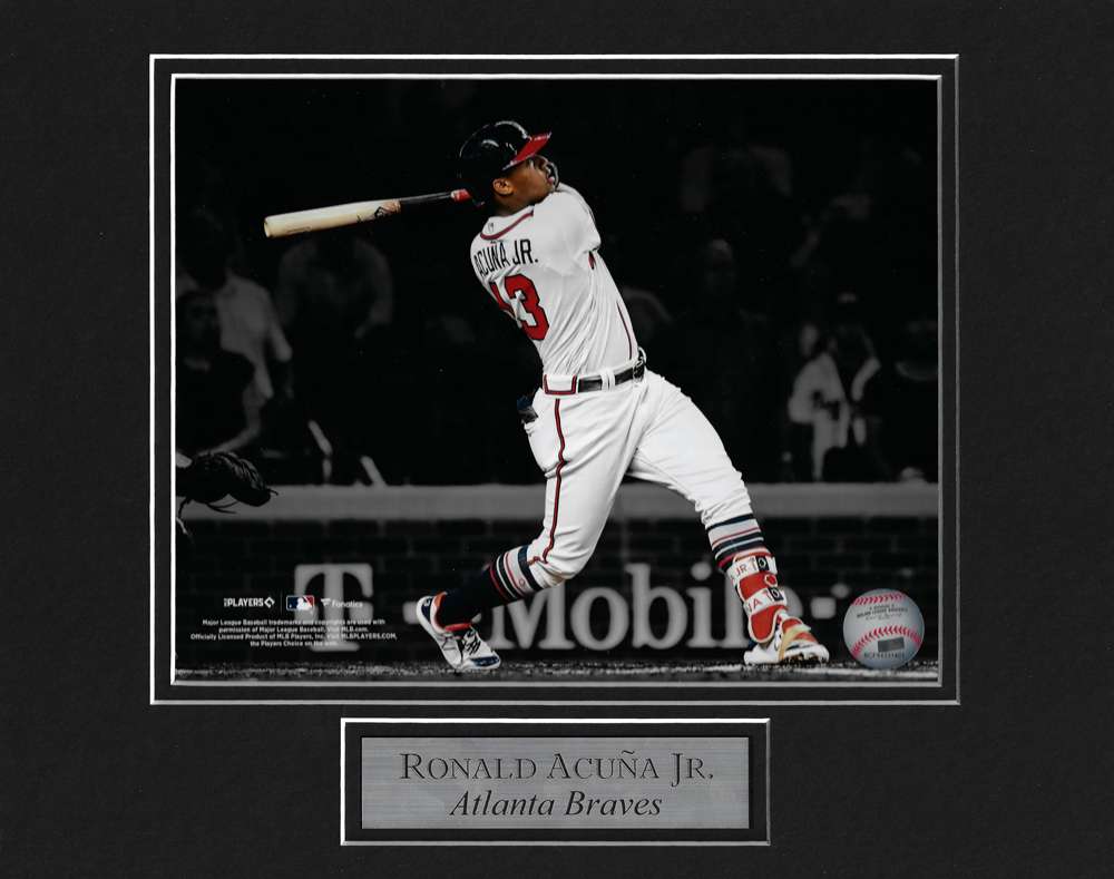 Ronald Acuna Jr. photo swing spotlight matted to 11×14, Atlanta Braves.