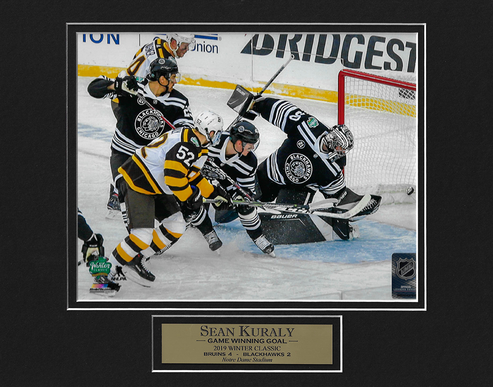 Sean Kuraly photo Winter Classic 2019 game winning goal matted to 11×14. This item is not framed unless you select the option for the cherry or black frame.