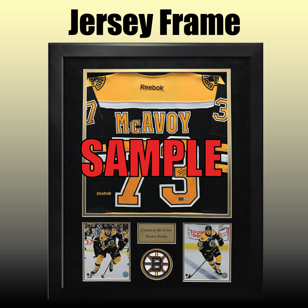 Frame show Special- Customer supplies the jersey, comes with double suede mat, name plate, 2 8×10 photos, and team patch