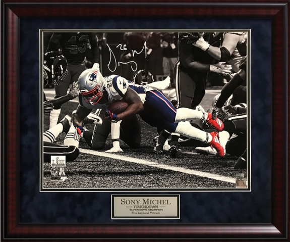Sony Michel Autograph Photo Super Bowl LIII Touchdown Spotlight 23×27 New England Picture Authentication