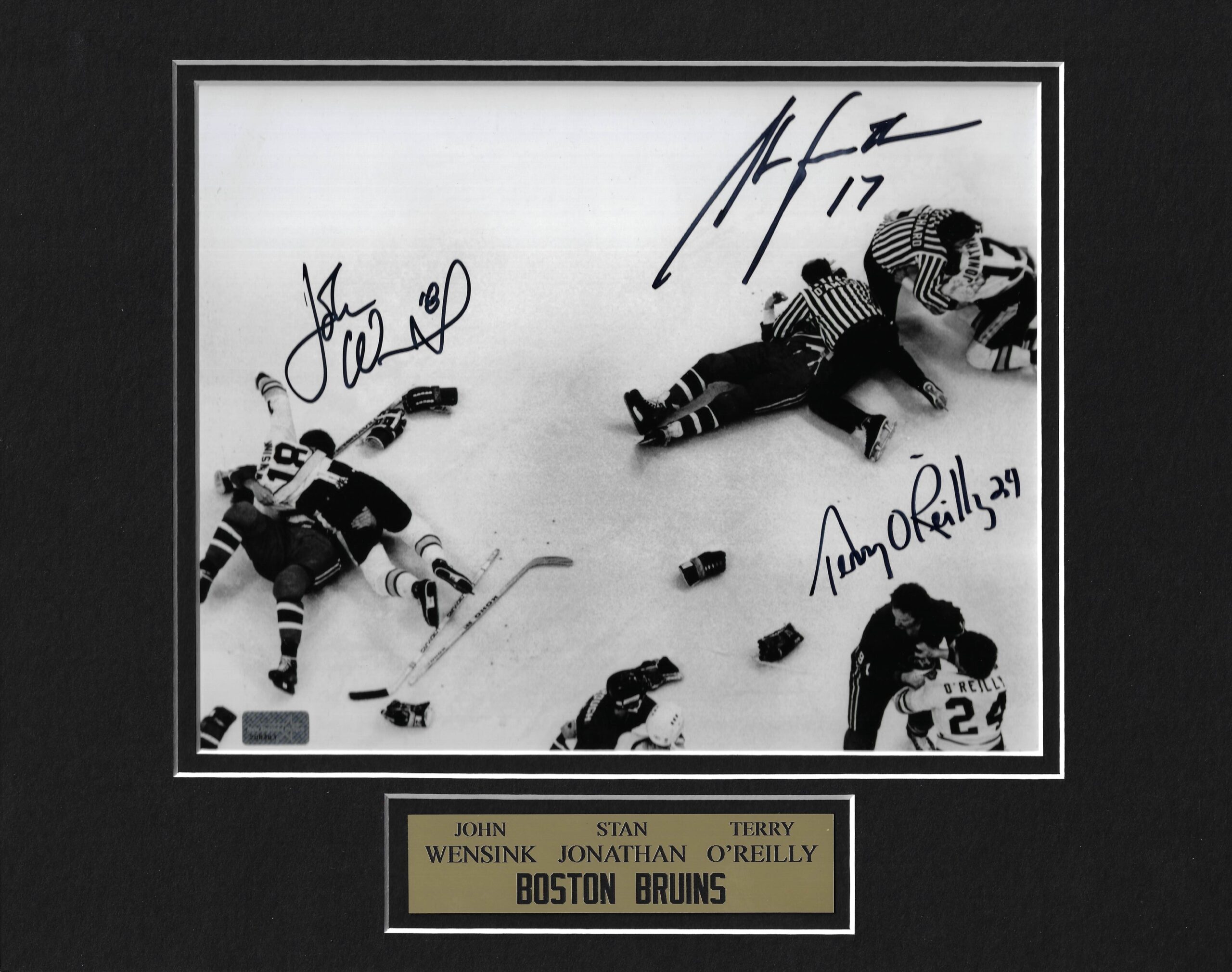 John Wensink Stan Jonathan Terry O’Reilly Triple Autograph Photo Ice Brawl 11×14
