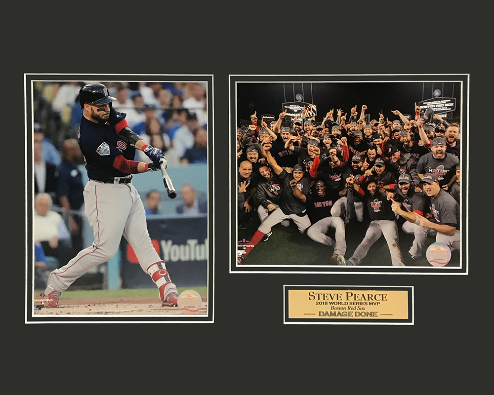 Steve Pearce photo 2 way World Series 2018 champion 16×20. This item is not framed unless you select the option for the cherry or black frame.