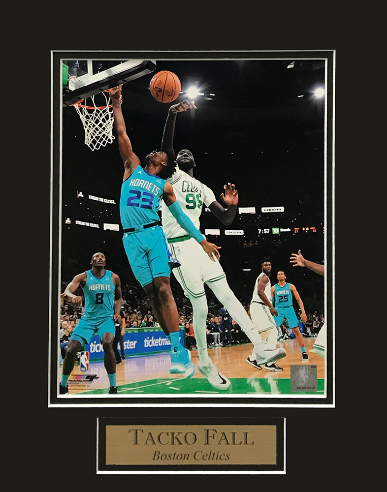 Tacko Fall photo block matted to 11×14 against Hornets.