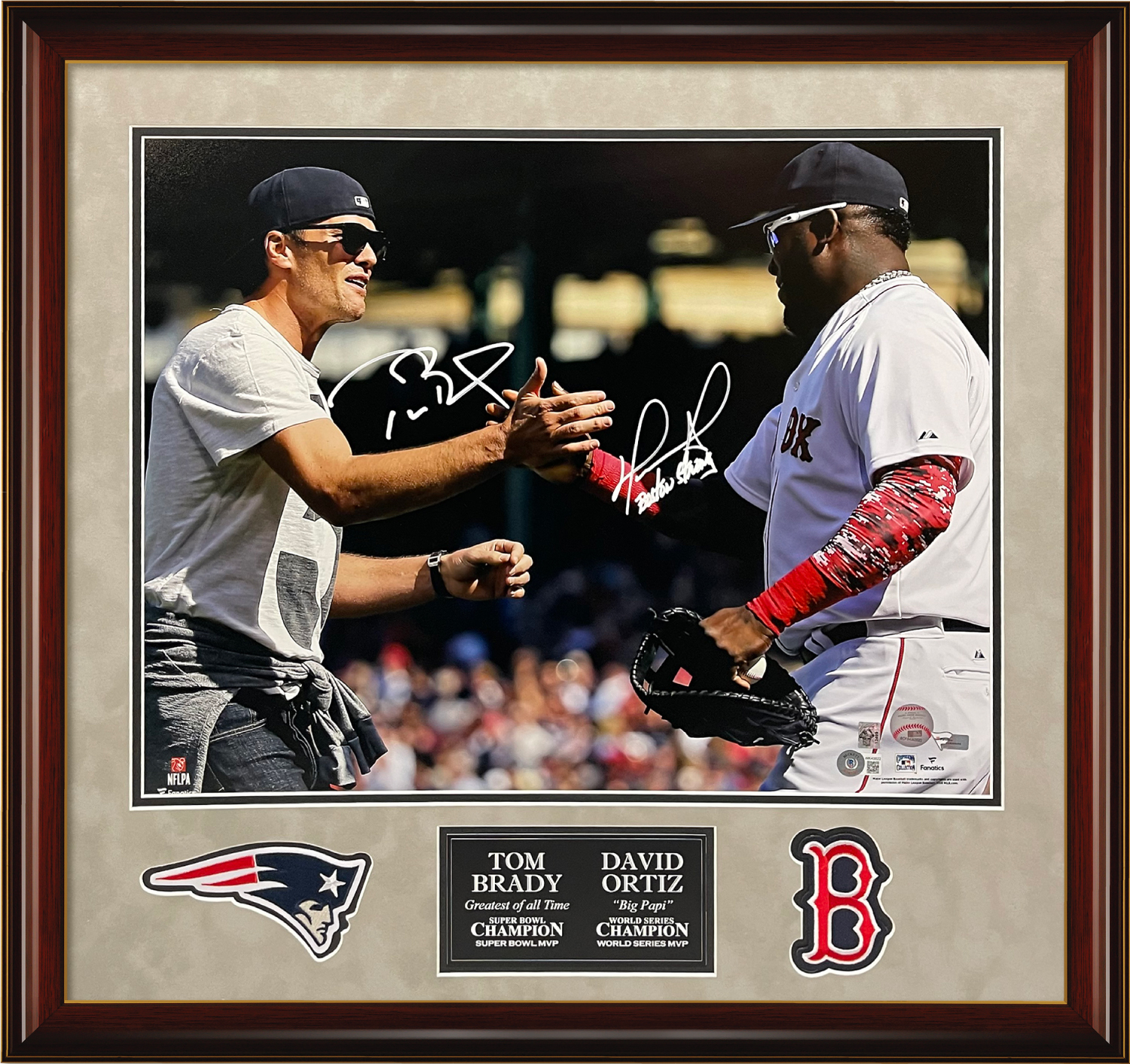 Tom Brady, David Ortiz Double Autograph Shake Hands 25×27 JSA Authentication