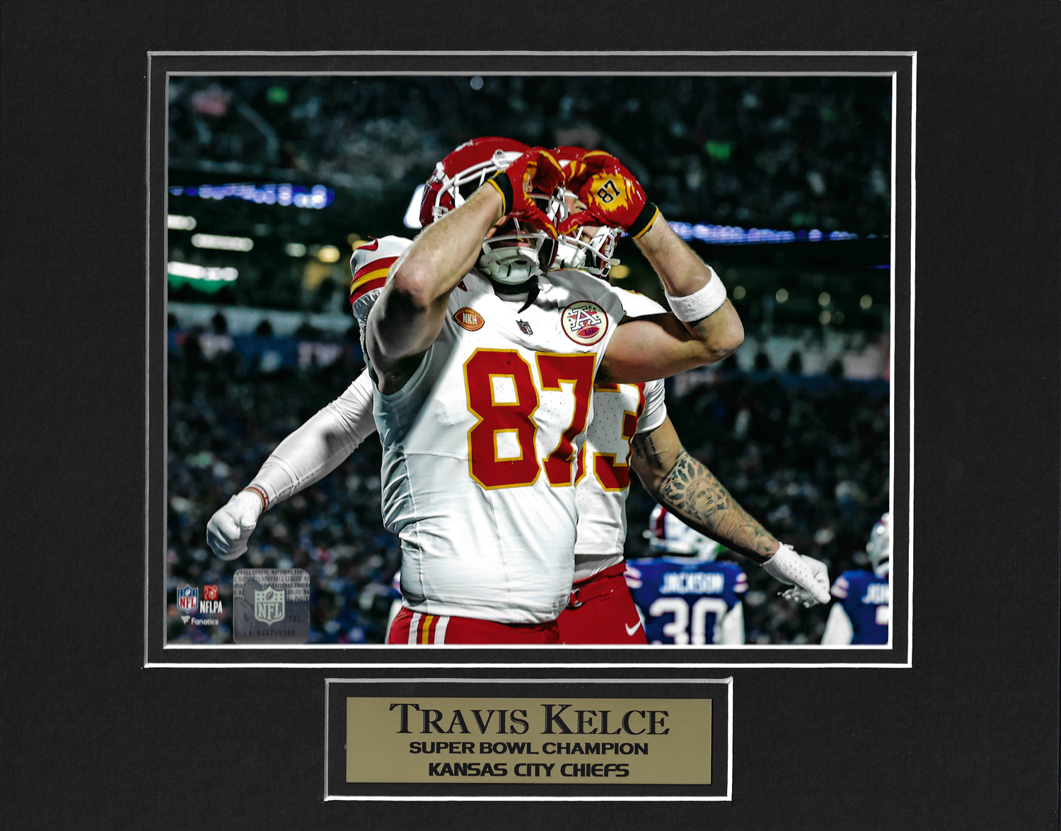 Travis Kelce Photo “<3”, matted and framed to 11×14. Kansas City Chiefs.
