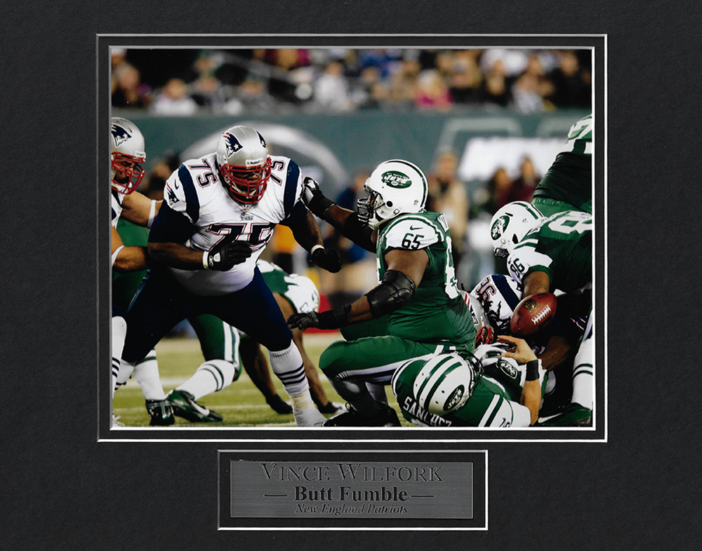 Vince Wilfork photo push Jets butt fumble matted to 11×14, New England Patriots.