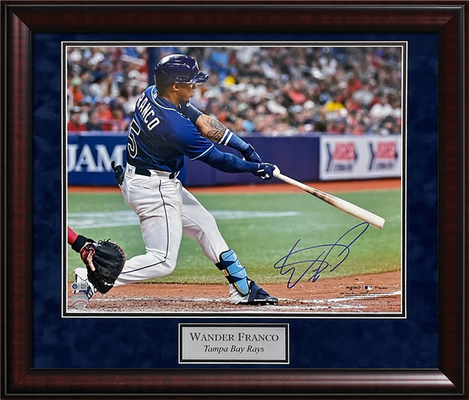 Wander Franco Autograph Photo Swing, matted and framed to 23×27. Tampa Bay Rays.