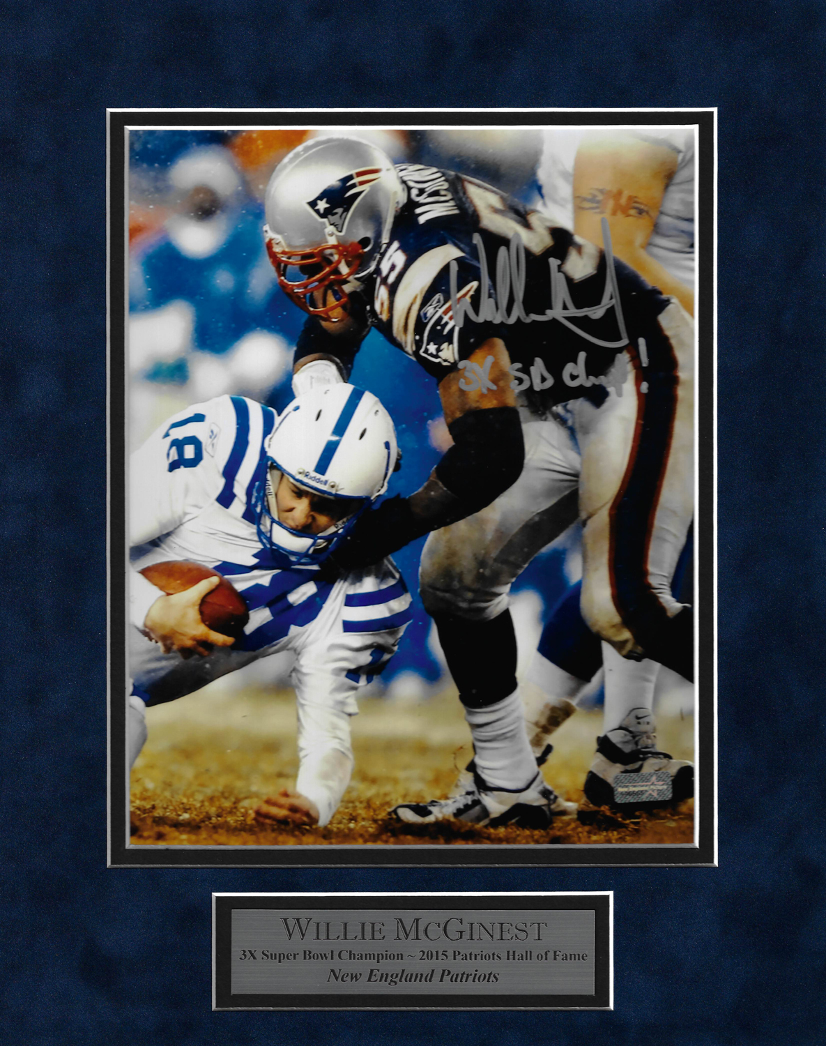 Willie McGinest Autograph Photo With Inscription “3X SB Champ!” Sack Peyton Manning Closeup 11×14