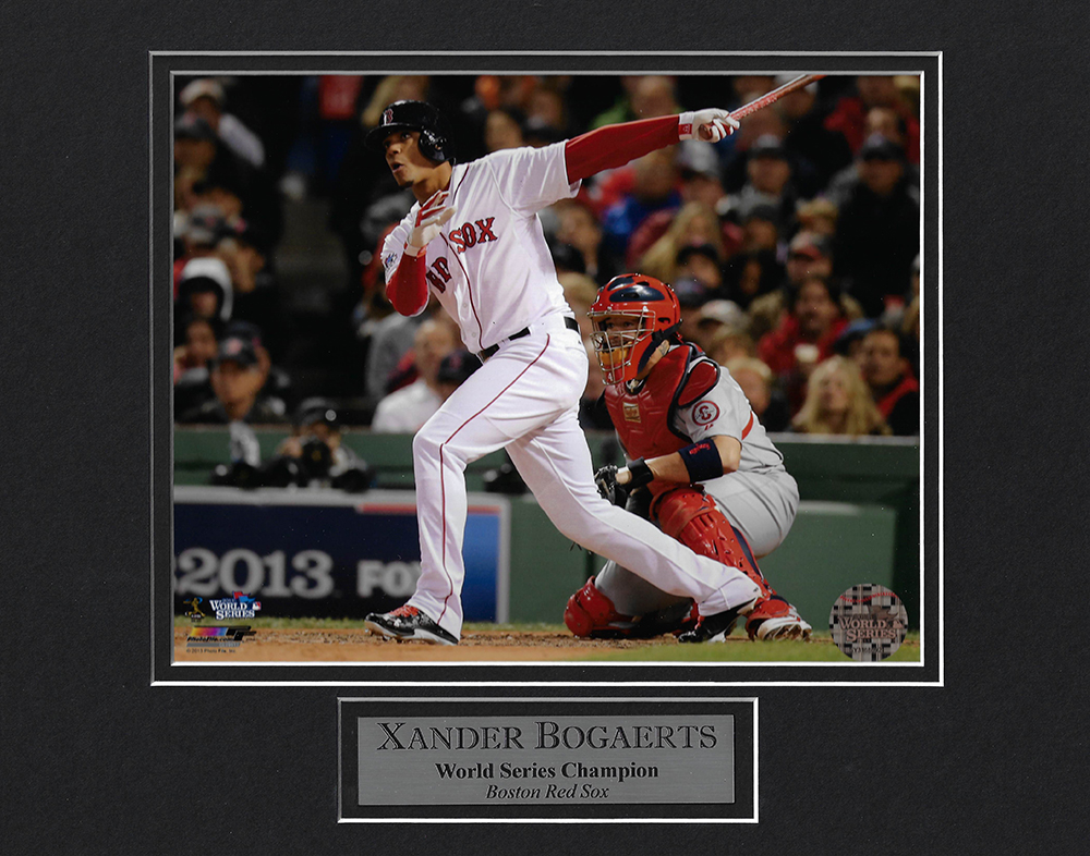 Xander Bogaerts photo 2013 World Series Champion matted to 11×14, Boston Red Sox. This item is not framed unless you select the option for the cherry or black frame.