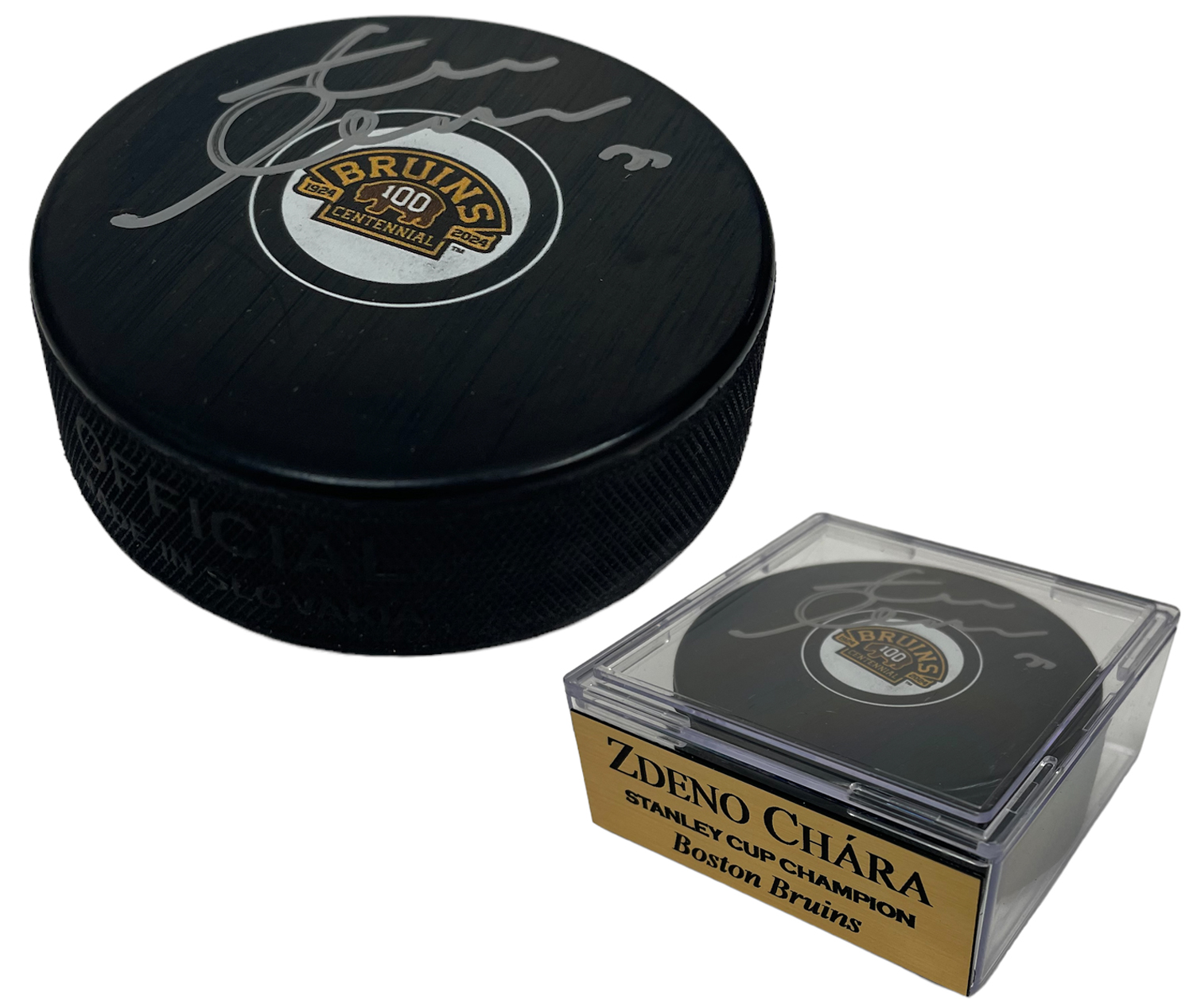 Zdeno Chara Autograph Boston Bruins Centennial Season Puck.